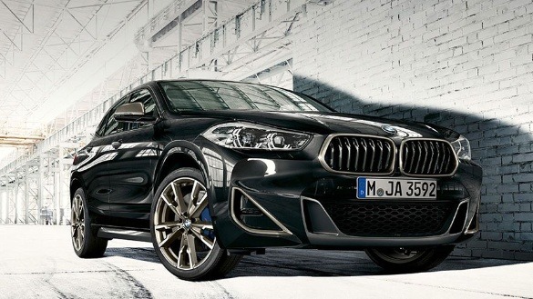 Der BMW X2 M35i präsentiert sich maximal sportlich – mit Elementen in Ceriumgrau, wie der Einfassung der BMW Doppelniere, der Spiegelkappen und der zwei Endrohrblenden. Die M Einstiegsleisten mit M35i Schriftzug auf verchromten Einlegern, die optionalen M Sportsitze mit integrierten Kopfstützen und der auf Wunsch erhältlichen M Sicherheitsgurte erinnern daran, was M bedeutet: ein extrem dynamisches Fahrerlebnis.